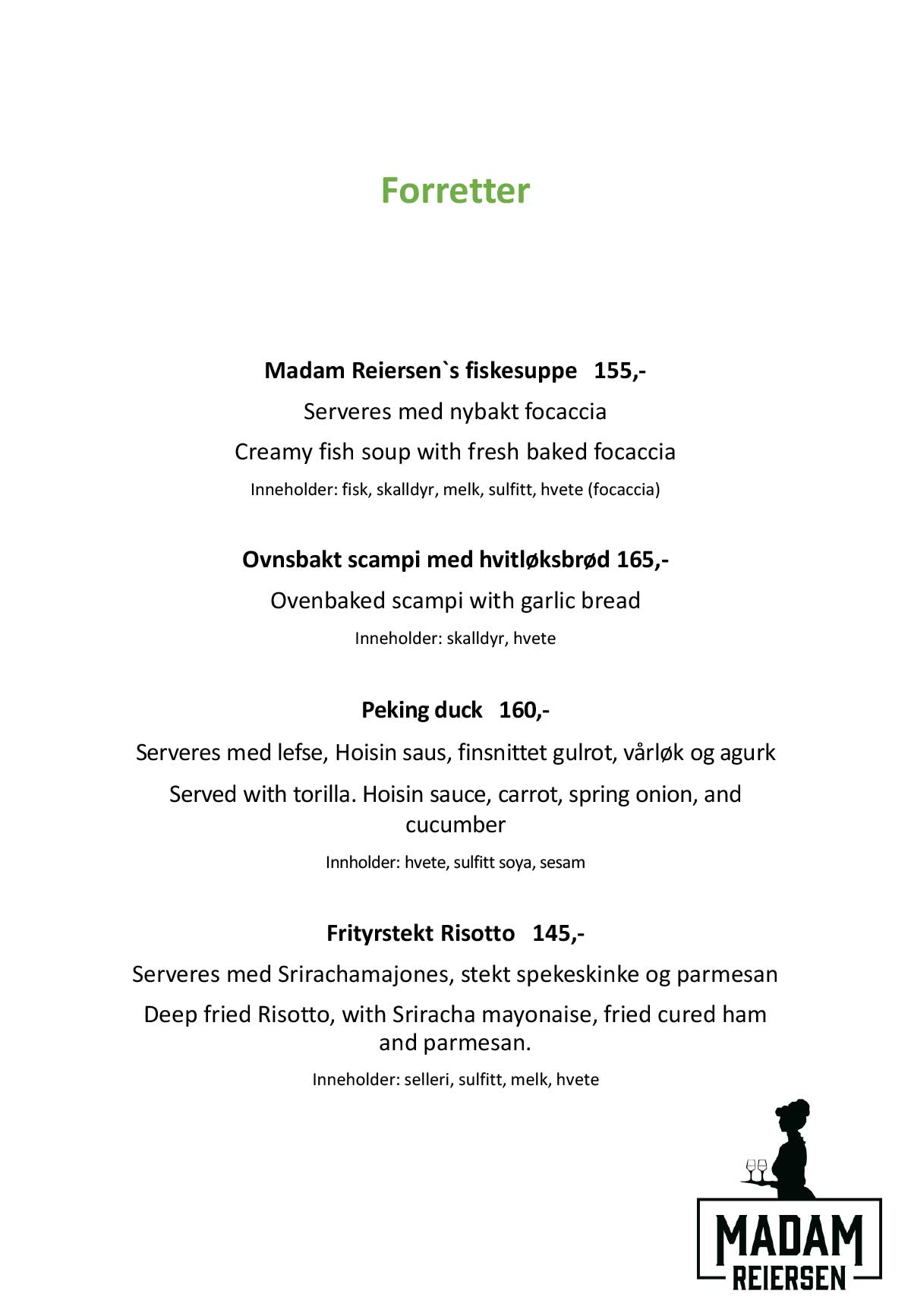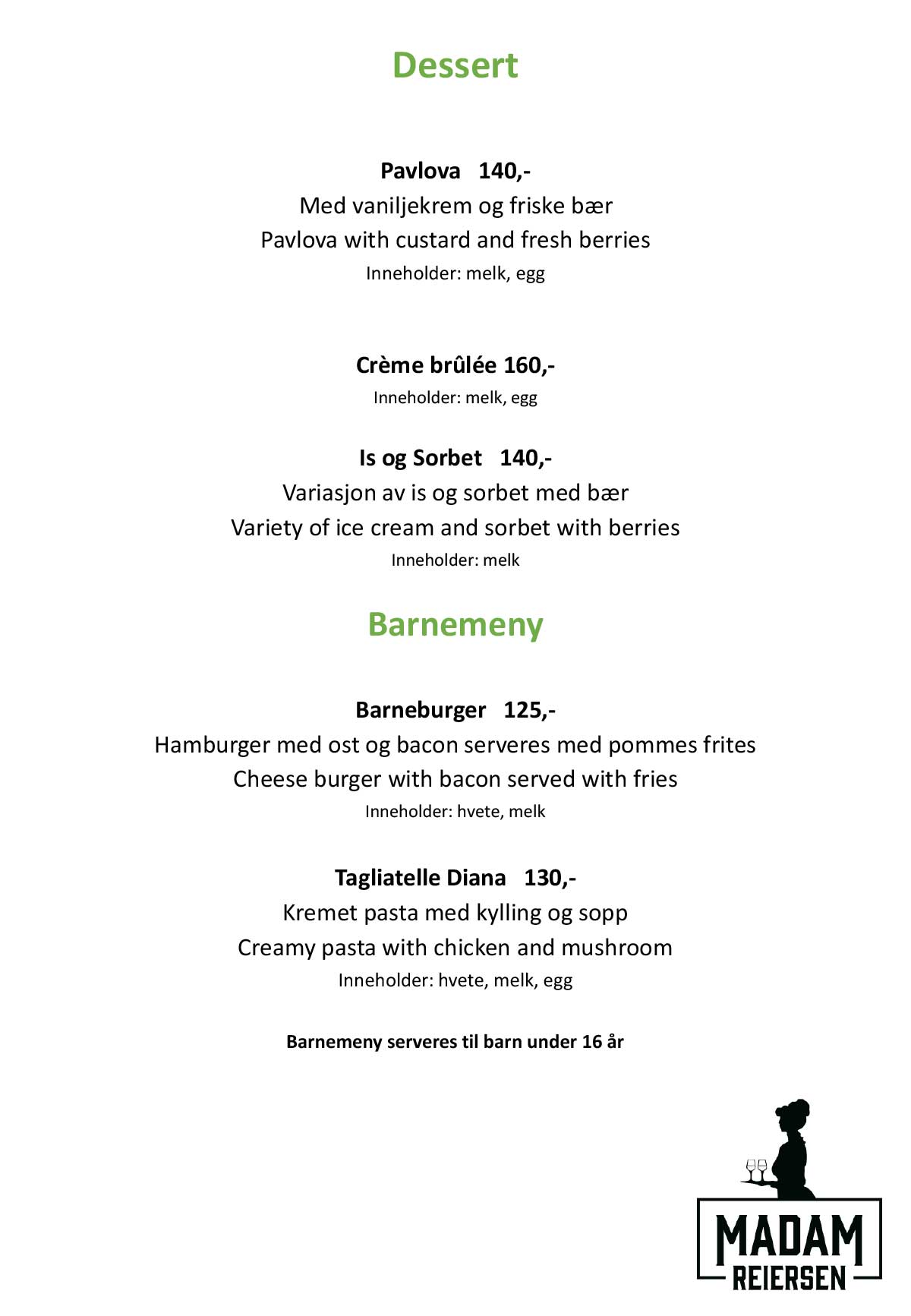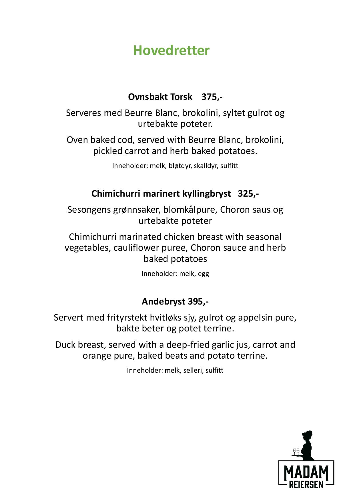 Våre menyer er nøye komponert for å gi deg en uforglemmelig kulinarisk opplevelse. Bon appétit!